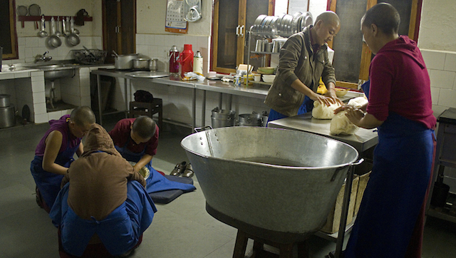 It’s long before dawn when the nuns assemble in the kitchen to start preparing breakfast. Meals are prepared collectively in the nunnery kitchens. Photo courtesy of Brian Harris.
