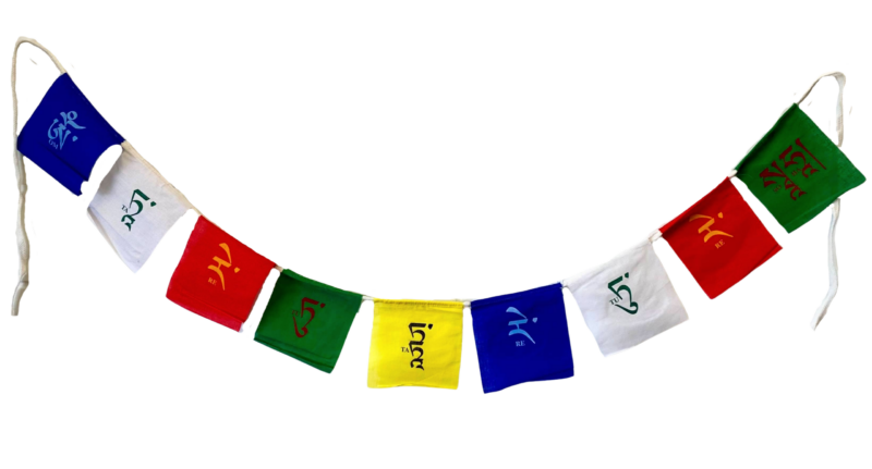 These are handmade so sizes vary slightly. Each flag measures approximately 4″ x 5″ and each set includes between 5 and 12 flags to fit the mantra which include one syllable of the mantra per flag.