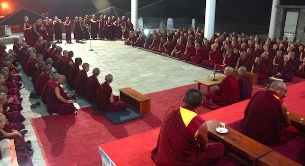 Nuns debate in front of their teachers at the 2014 Jang Gonchoe held in October at Dolma Ling Nunnery and Institute. September 20, 2015 will mark the 20th anniversary of the Jang Gonchoe for nuns.
